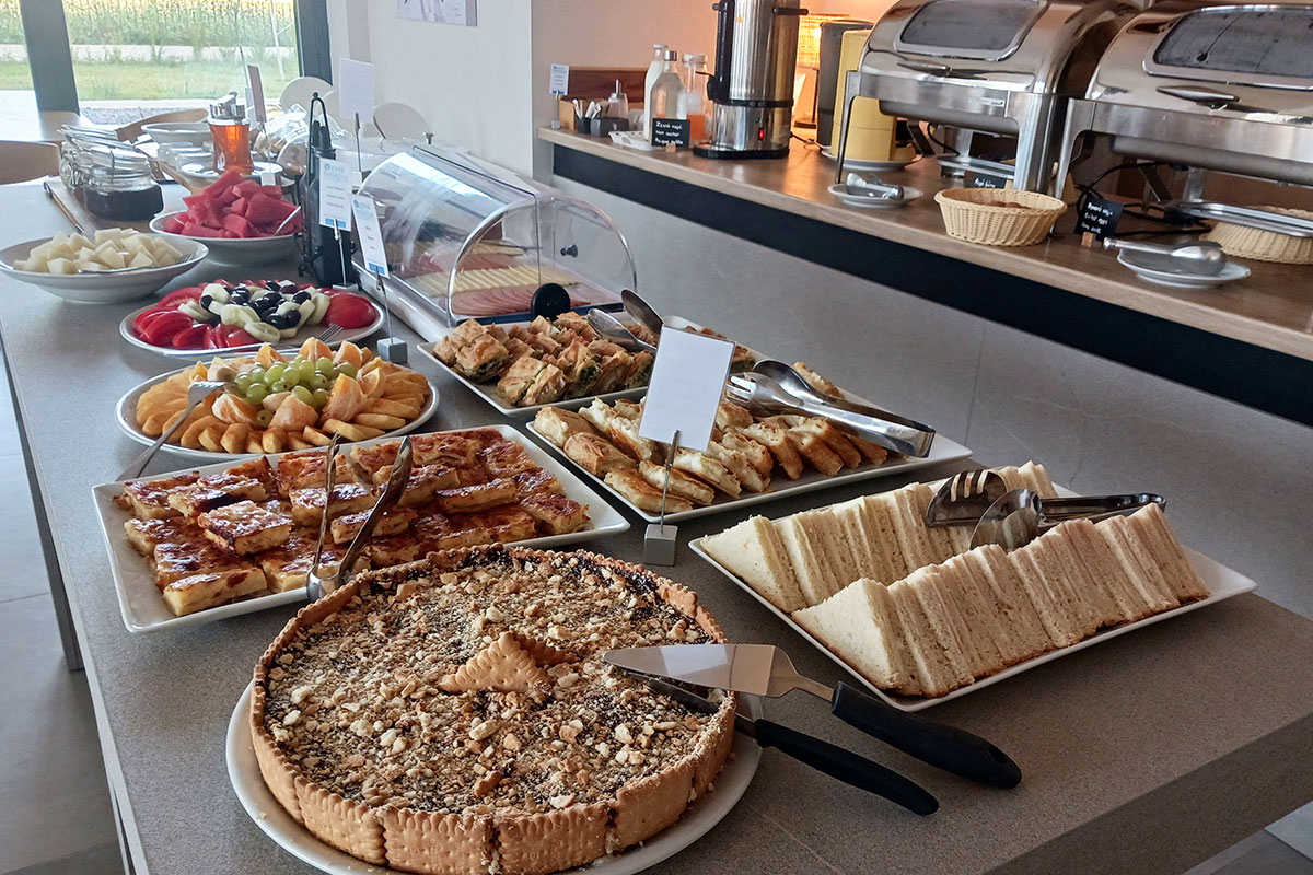 Potrai scegliere tra una varietà di succhi, frutta di stagione, uova in tante deliziose versioni, soffici omelettes, torte salate, torte e biscotti preparati da noi, marmellate e tradizionali dolci al cucchiaio, feste biscottate e dolci tradizionali. Potrai trovare anche frutta e verdura fresche, una selezione di cereali, formaggi, olio extra vergine di oliva e salumi freschi. Offriamo anche molte proposte a basso contenuto di carboidrati e opzioni vegetariane e vegane.